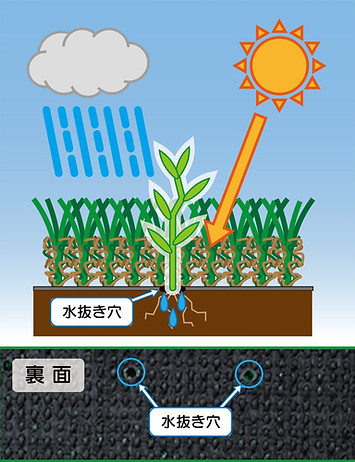 下地部分とパイル部分を熱圧着で一体化する事により人工芝特有の抜け毛が少なくなる耐久性が向上しました。また下地が全面透水であることで防草シー トの施工が必要なくコスト的にも低予算で設置が可能です。また同一系素材でできていることから一般ごみとして処理する事も可能となっております。
